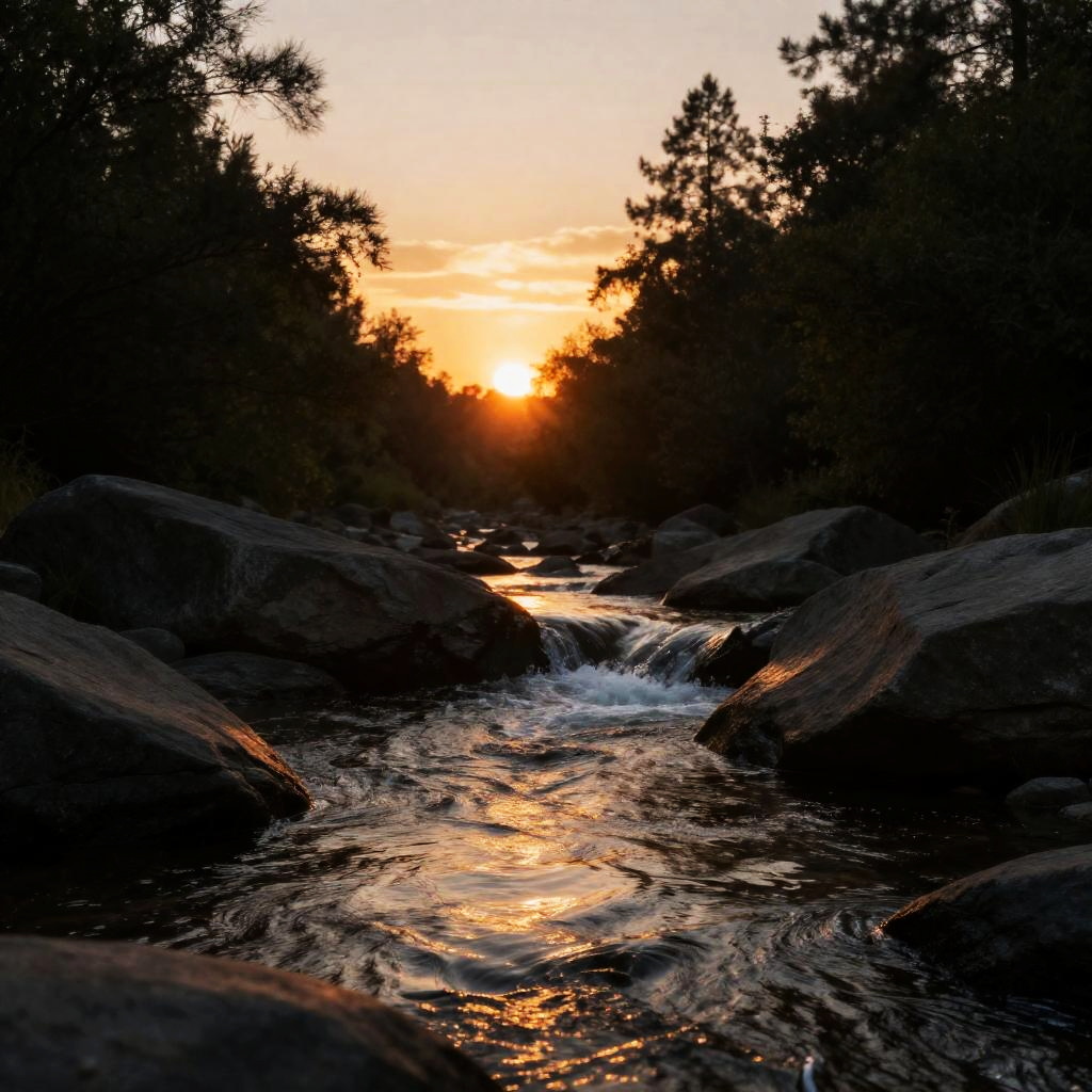Realistic Sunset Stream Scene