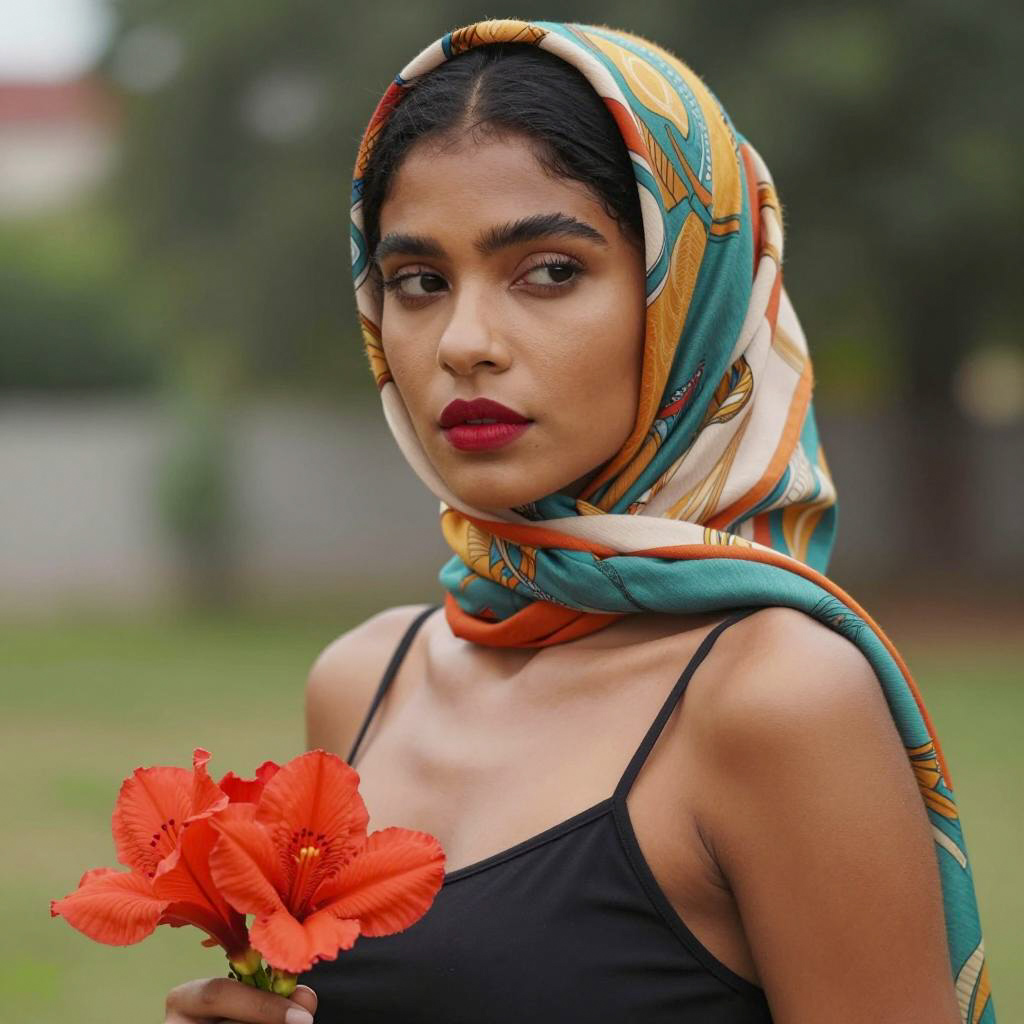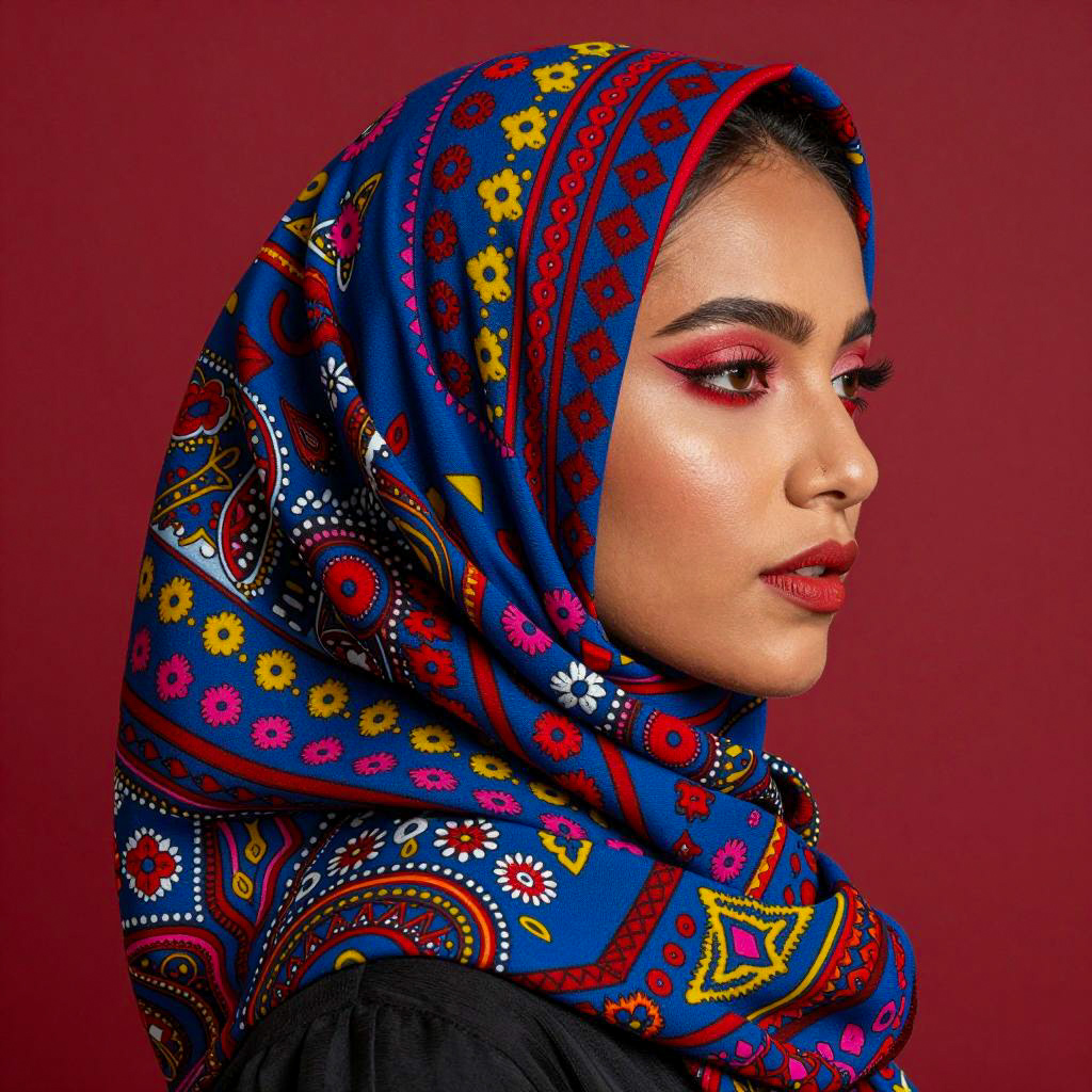 Colorful Portrait of a Woman in Headscarf