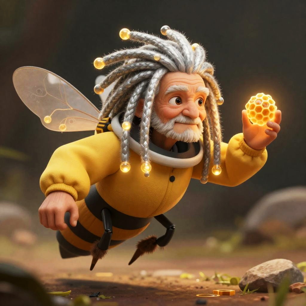Elderly Cosmic Beekeeper with Honeycomb Dreads