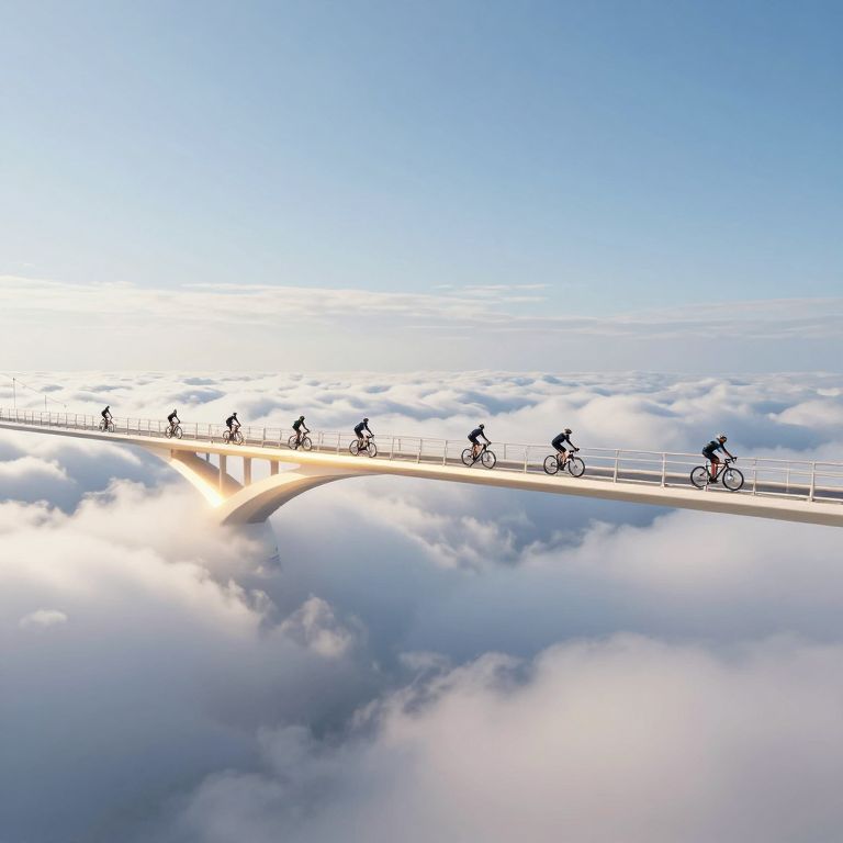 Cyclists Crossing Ethereal Cloud Bridge