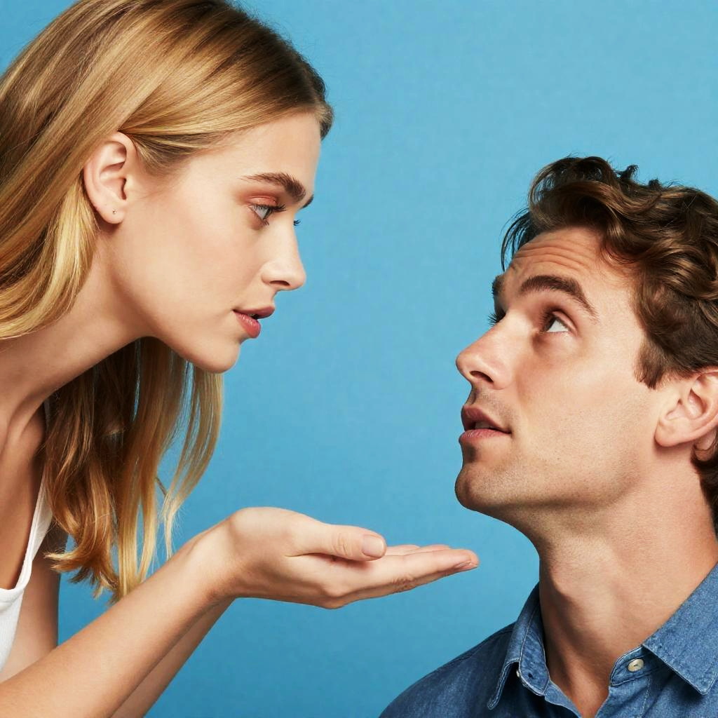 Photograph of a smiling couple seated on a bench. Man with curly brown hair, gray t-shirt, and black sunglasses. Woman with long blonde hair, white strapless top, holding a pink condom wrapper. Table with red drink, beer bottle, and glass. Bright outdoor setting. Both leaning towards each other, laughing.
