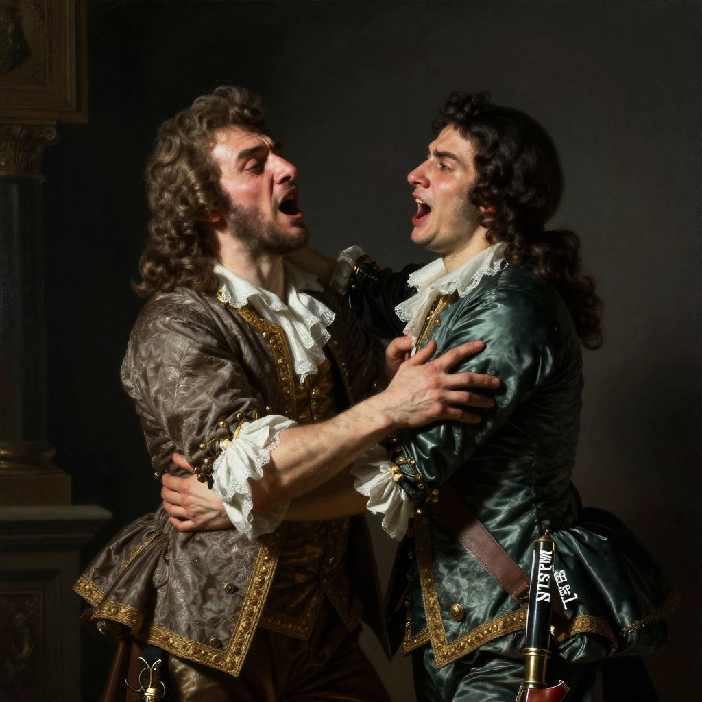 Whipping scene, dramatic chiaroscuro lighting, intense emotional expression, historical setting with period costumes, detailed textures, cinematic composition, Baroque style painting realism