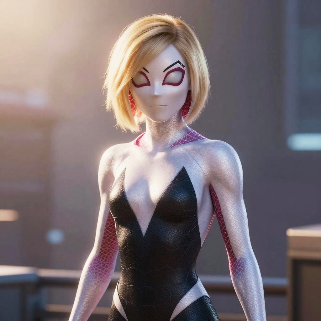 Spider-Gwen in Black and Gold Suit Under Moonlight