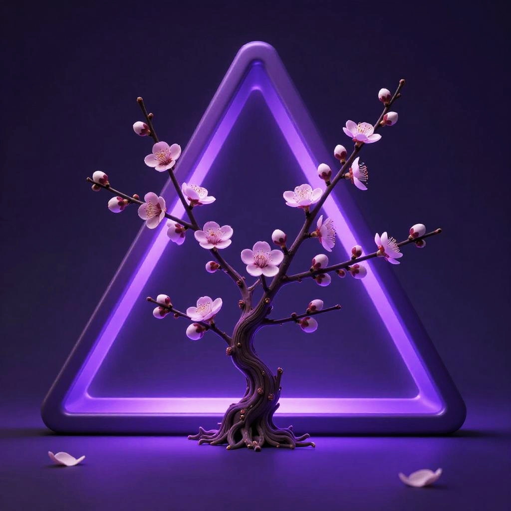Dream Scenery, a glowing purple-colored triangle, 1plum blossom, (masterpiece, top quality, best quality, official art, beautiful and aesthetic:1.2), realistic, (ultra-detailed, best shadow), cinematic film still