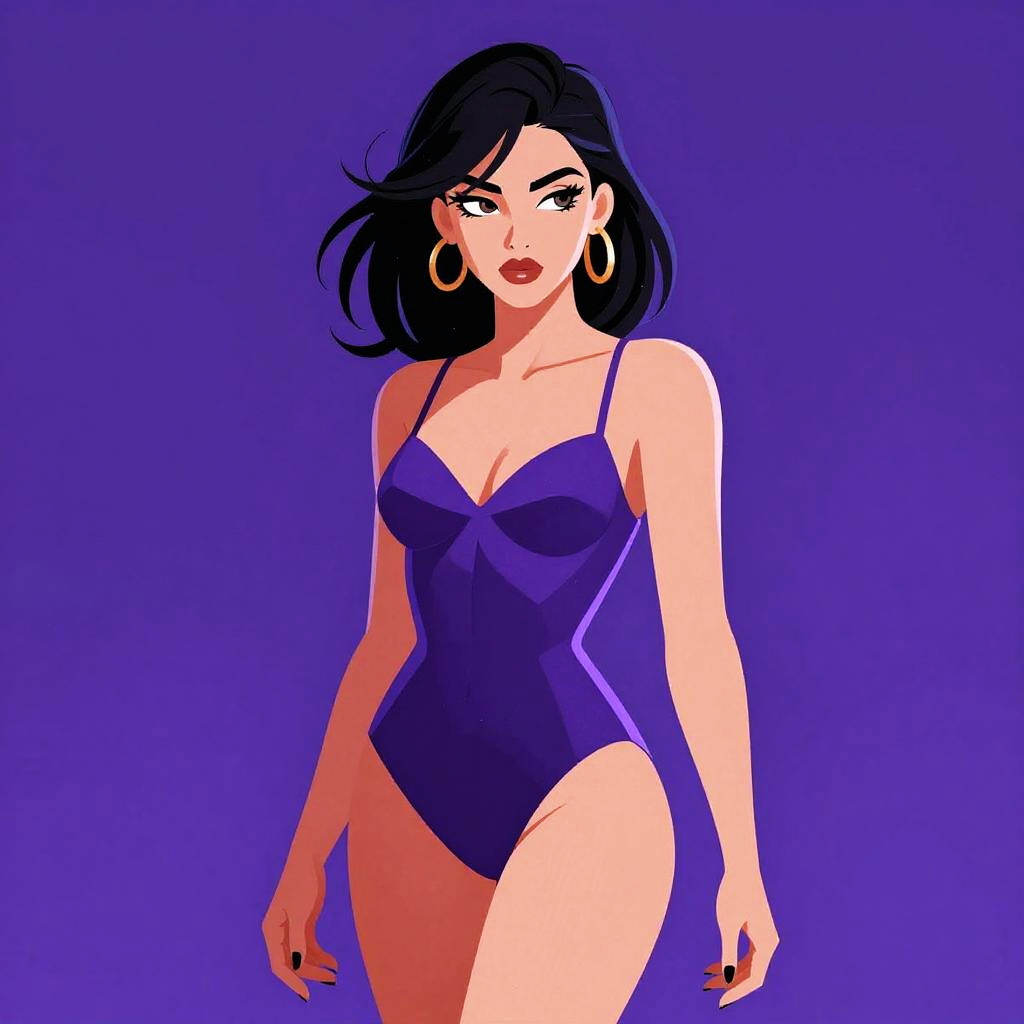 Woman illustration. Cartoon, erotic vibe. Fusion of styles Neoclassical and Synthwave