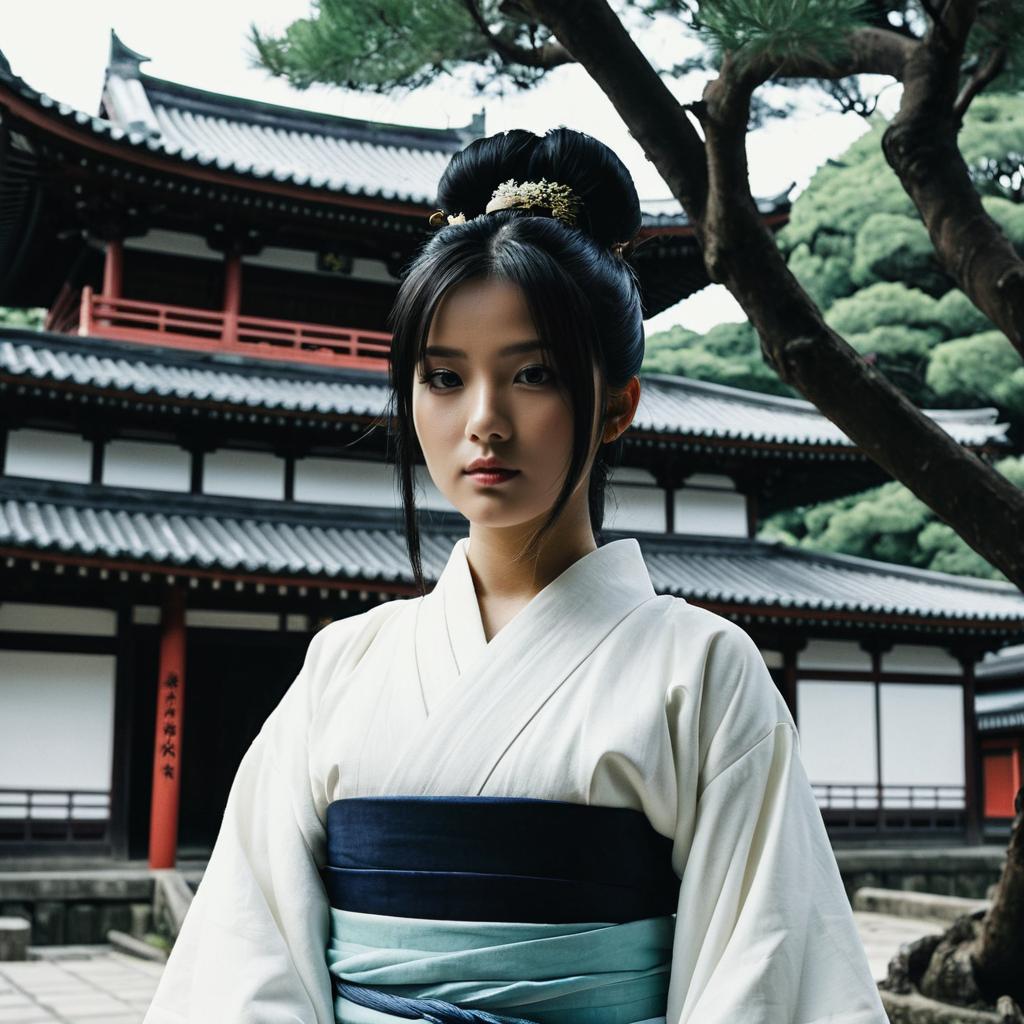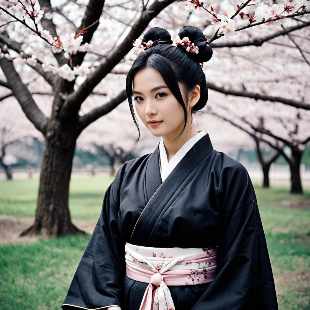 Elegant Japanese Girl in Cherry Blossoms