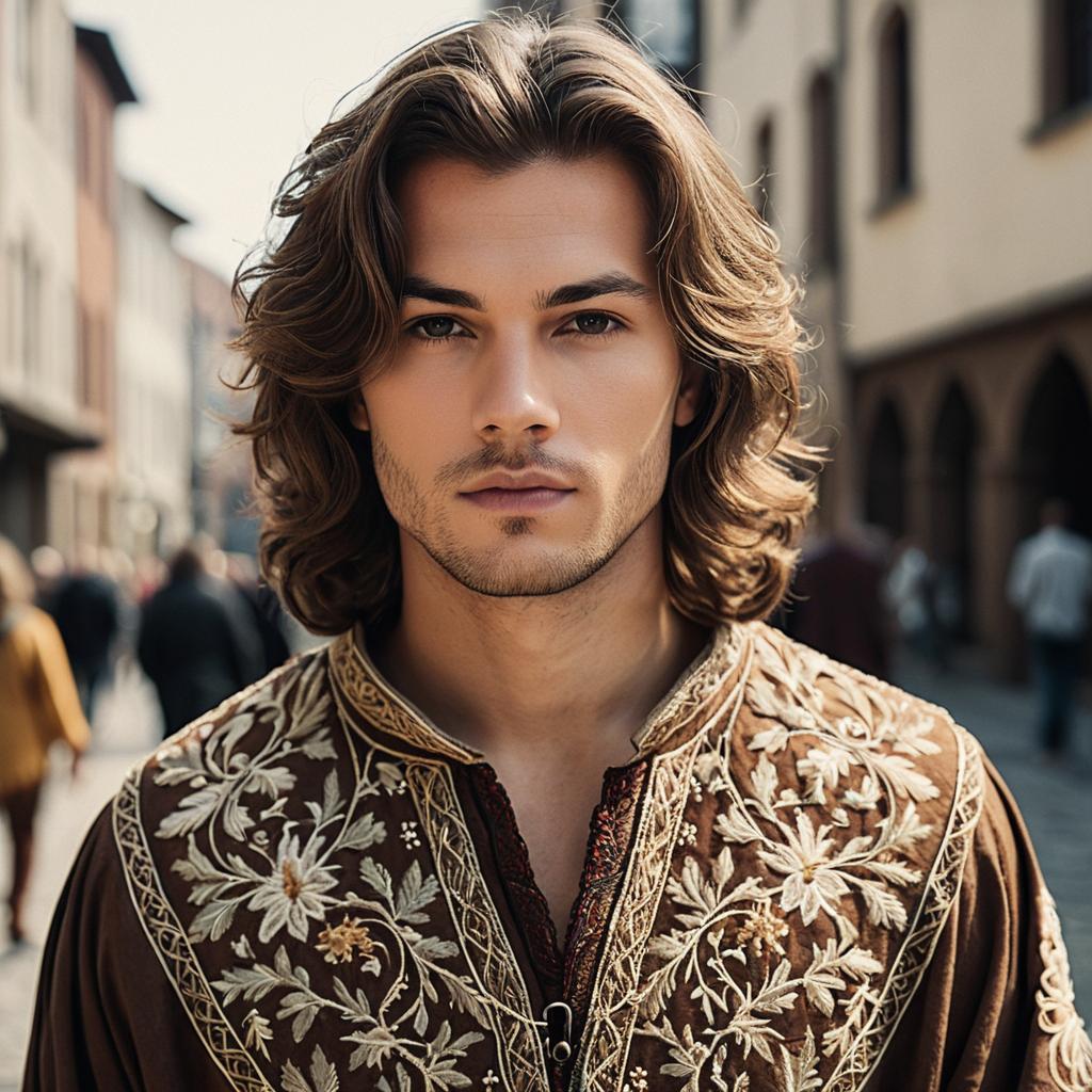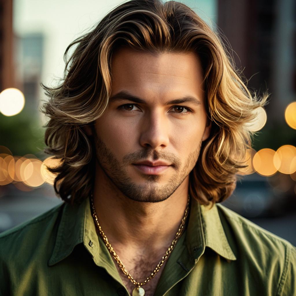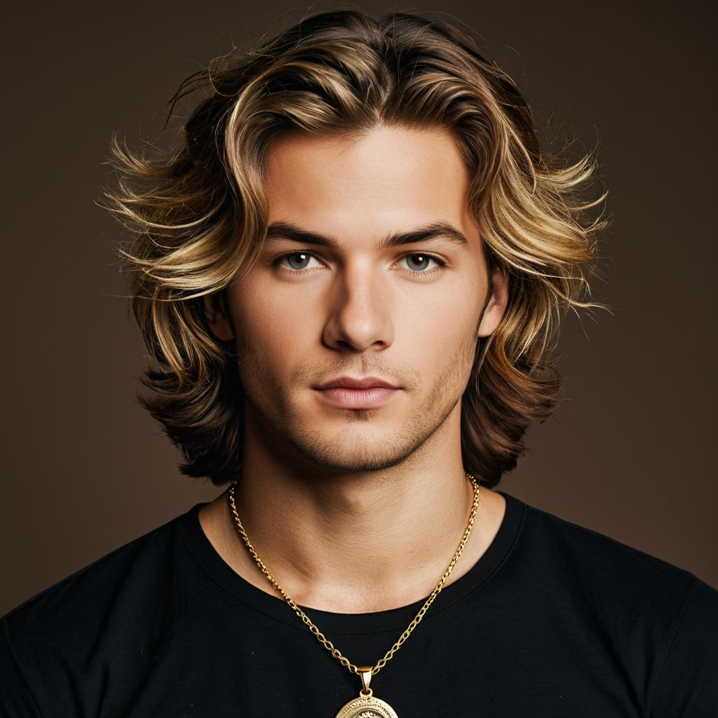 Handsome Young Man with Wavy Hair and Gold Necklace