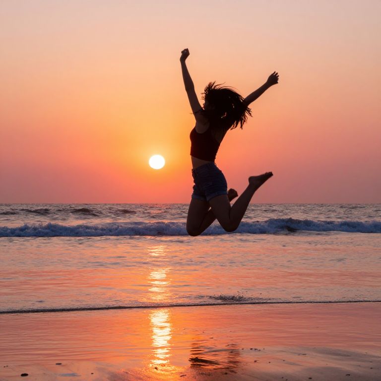 Carefree Woman Dancing on Sunset Beach