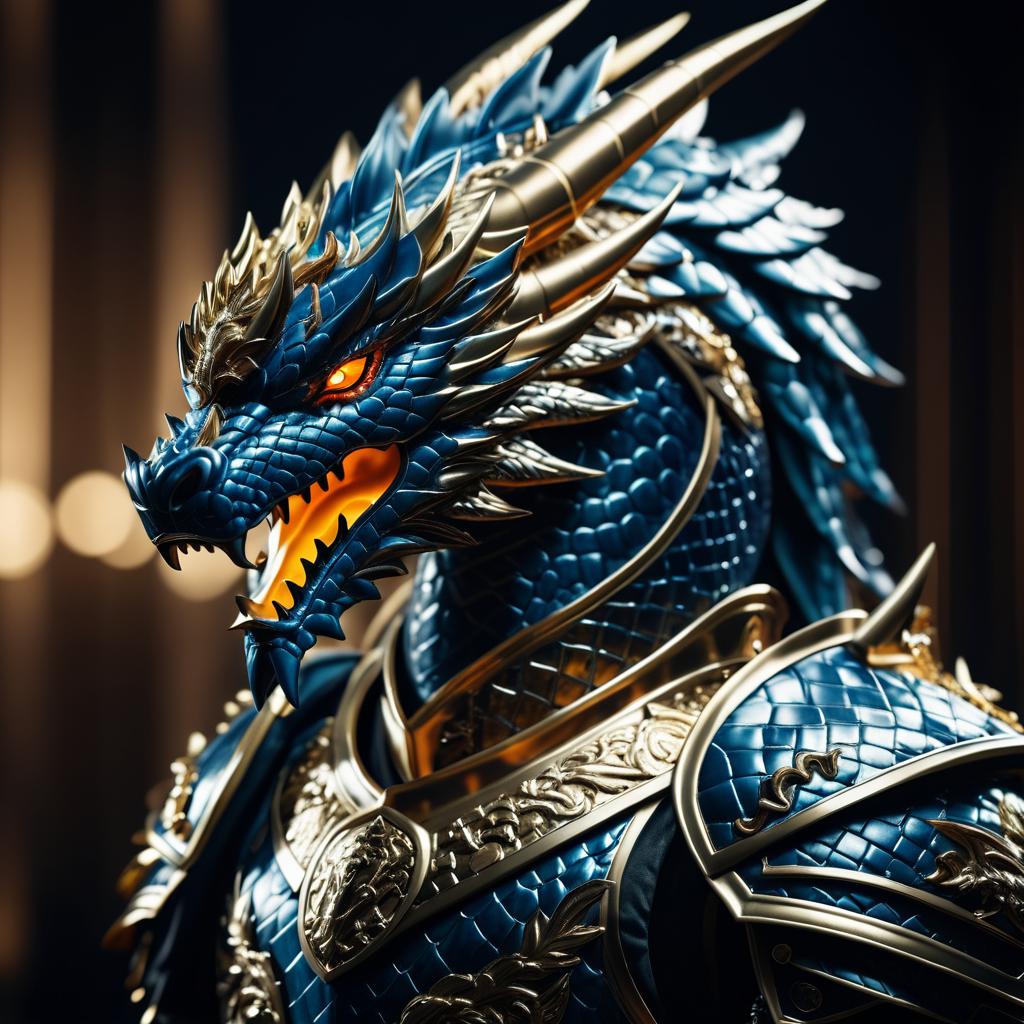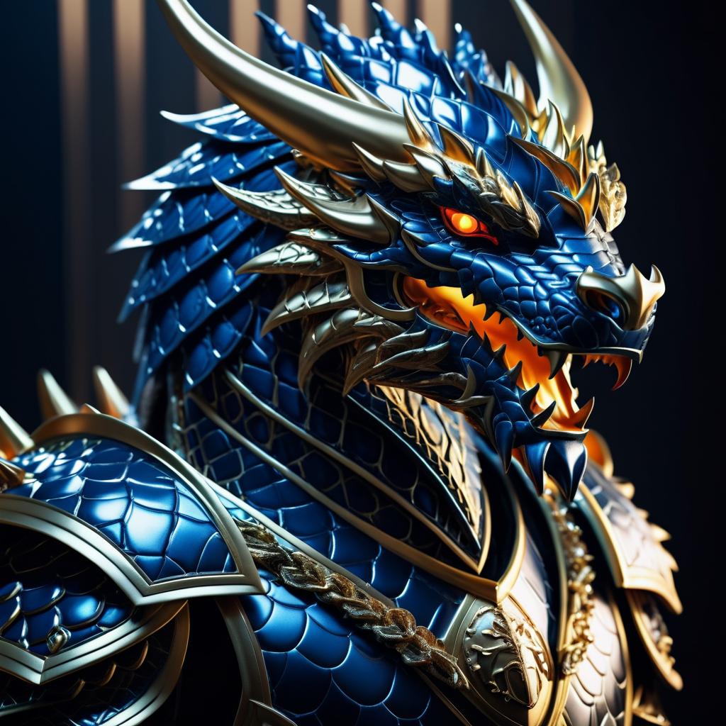 Fierce dragon wearing Versace armor, luxury materials, cinematic and professional studio lighting, sharp focus, 4K.