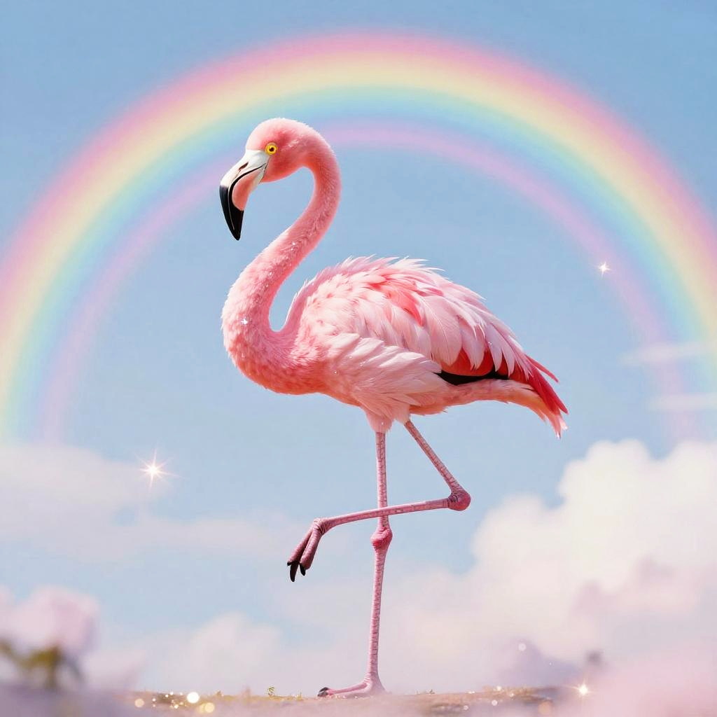 Pink Fluffy Fairy Dancing on Rainbows