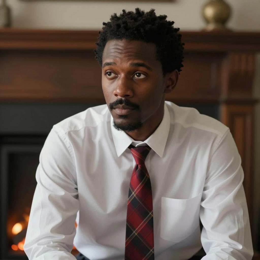 Two Black men stand in a snowy urban street. Both wear fur coats and hats, gold chain necklaces, and black gloves. The left man has a red tie, mustache, and looks surprised. The right man has a black beanie, patterned tie, and looks surprised. Background includes brick buildings, streetlights, and traffic signals. Snow covers the ground.