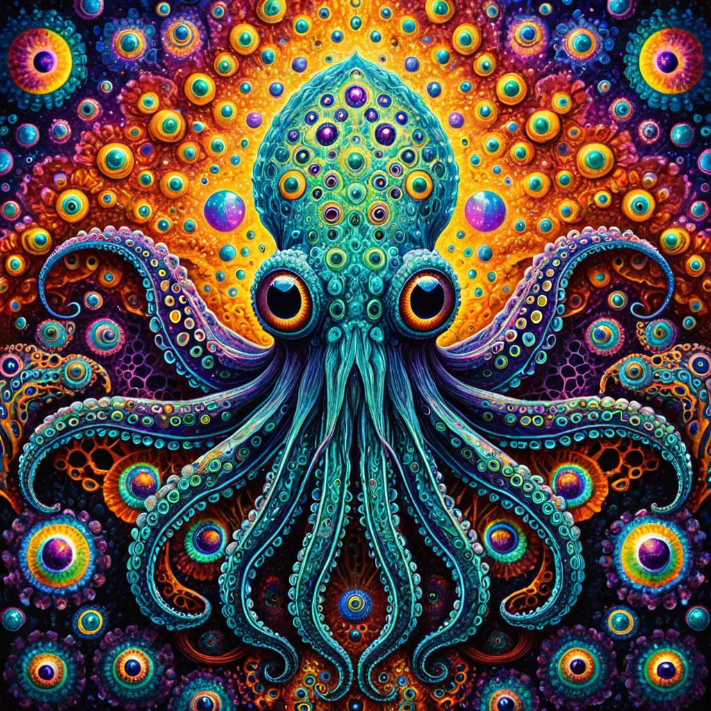 Surreal Bioluminescent Amoeboid King with Psychedelic Patterns
