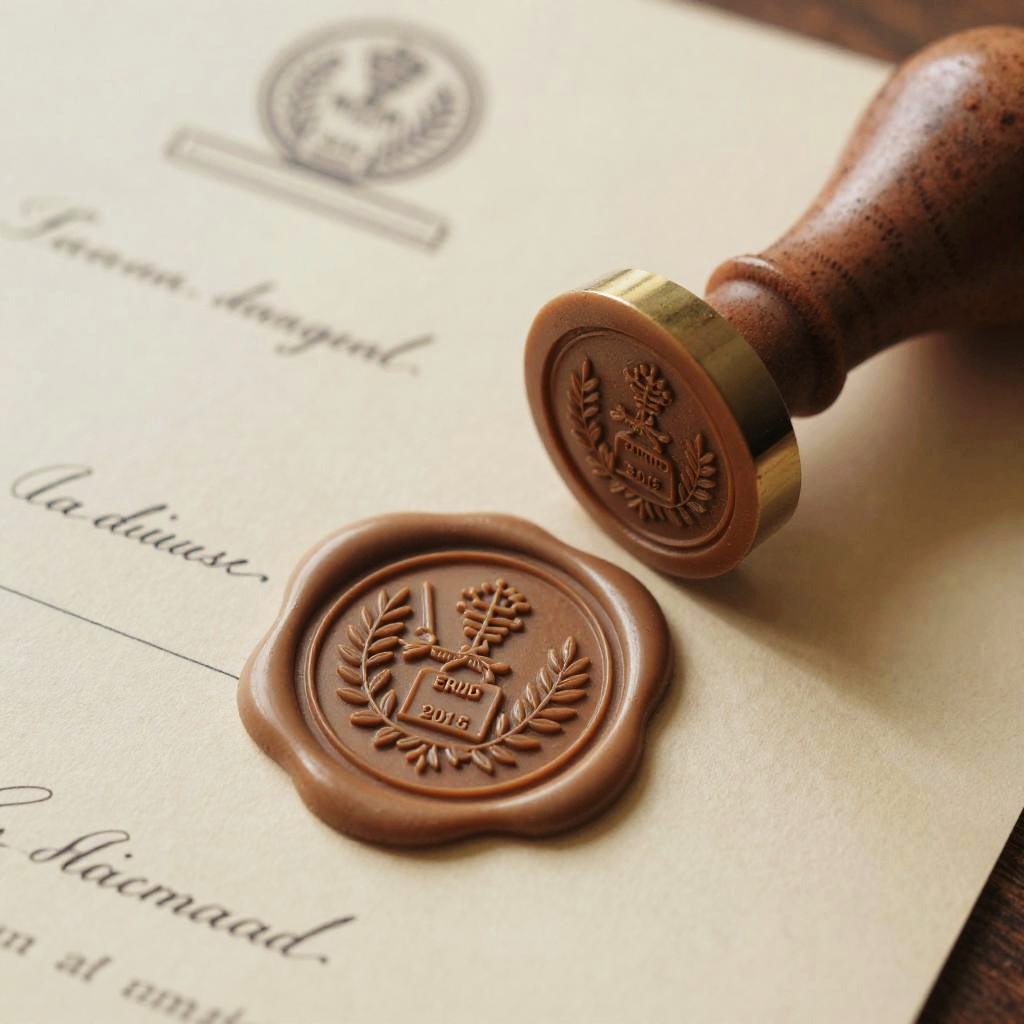 A close-up of a certified seal on an official document, intricate details of wax stamp and embossed paper texture, vintage style artwork with warm earthy tones and fine linework, symbolizing authenticity and credibility
