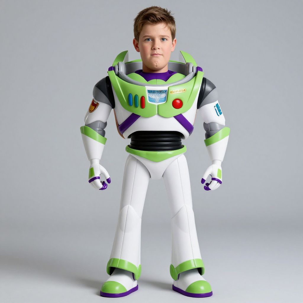 Real buzz lightyear costume, 1boy, male focus, solo, gloves, full body, standing, armor, realistic, looking at viewer, science fiction
