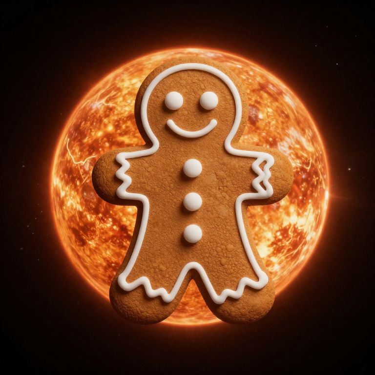 Gingerbread dysons sphere around sun, realistic, high detail, sharpness, photo sharp, canon, photo from space, up close, in your face, 2:1,