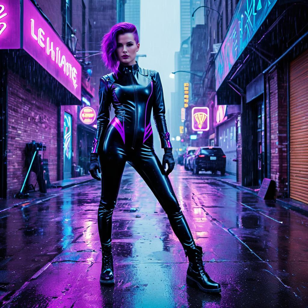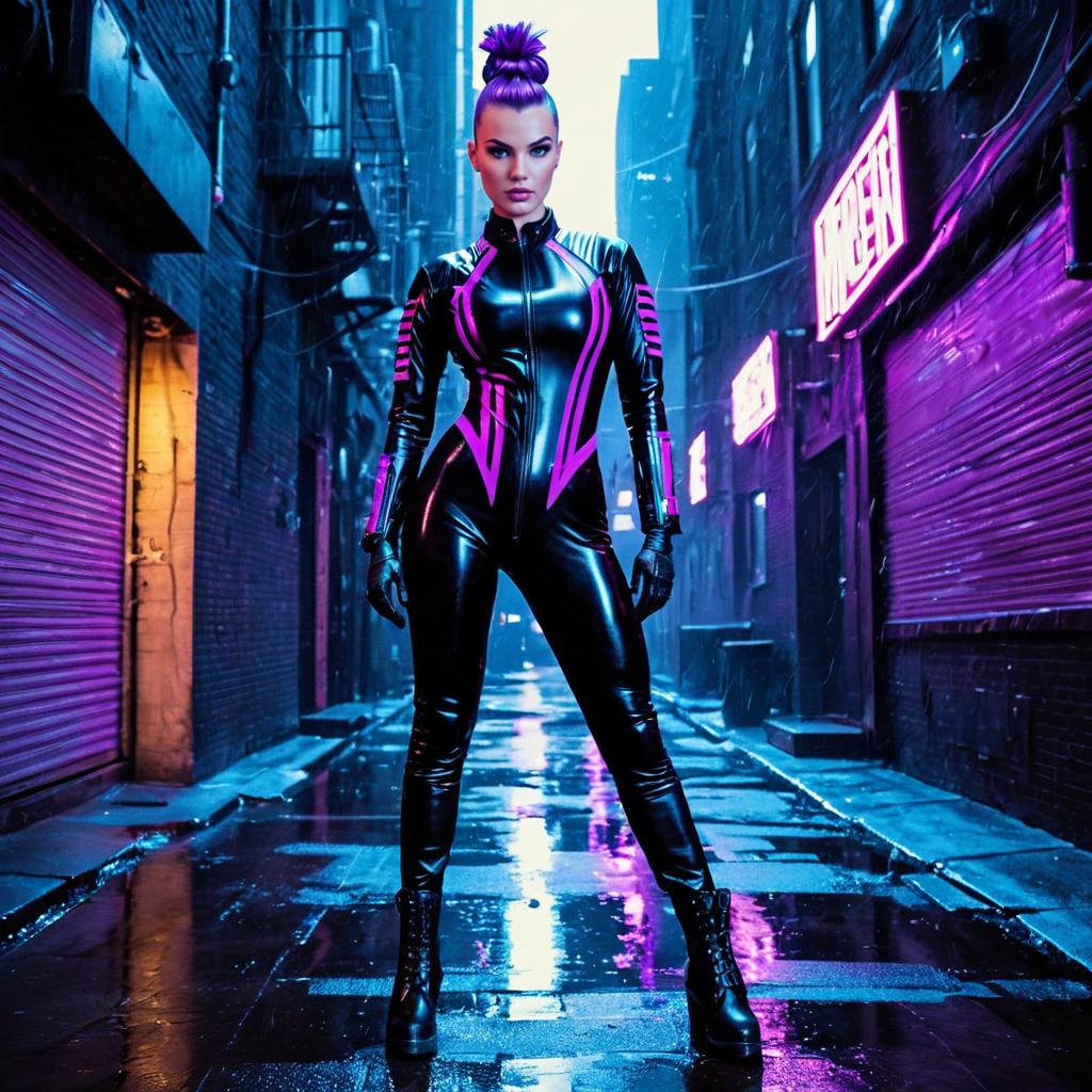 Futuristic Cyber Investigator in Neon Catsuit