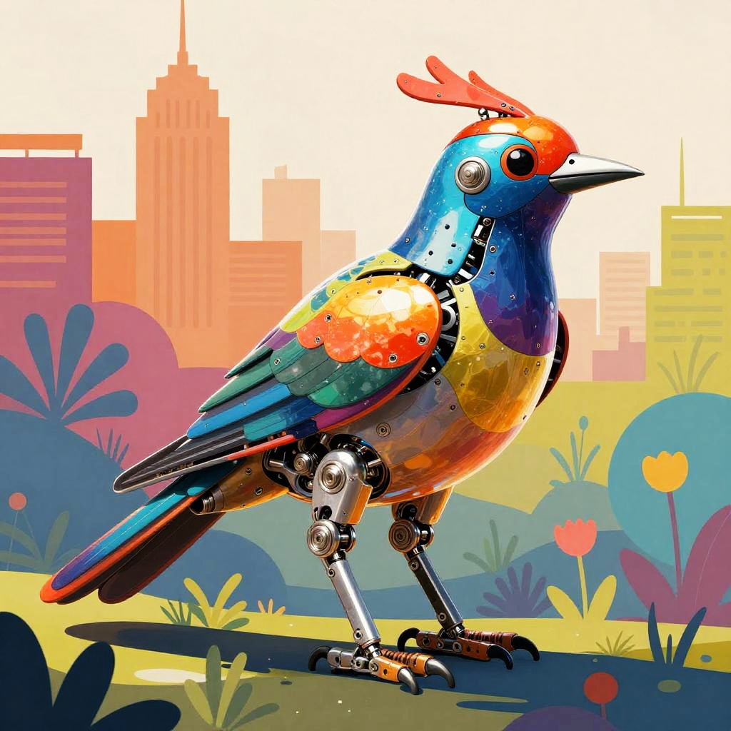 Vibrant Mechanical Bird Illustration