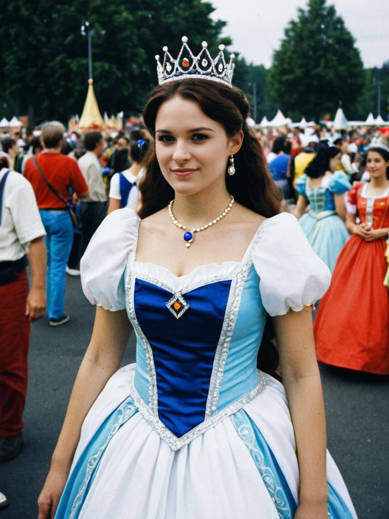 Woman in Princess Costume, photorealistic festival cosplay photo