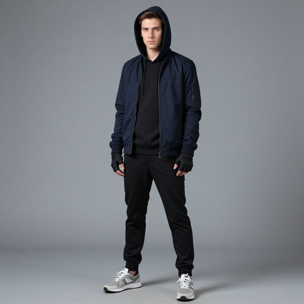 "Workout Outfit Man Dress, man in a hoodie and gloves posing for a picture"