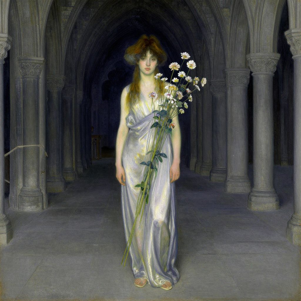 File:Odilon Redon - Woman in a gothic arcade- woman with flowers ...
