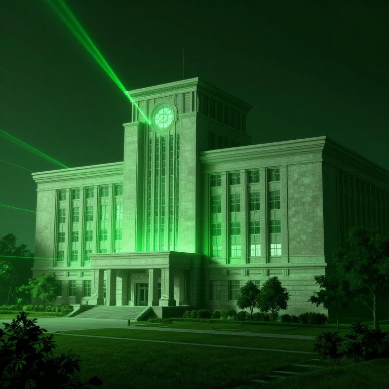 Arnold Render can you design university building, aesthetic, 8k, volumetric lighting, no background, no environment, green theme, can you use green laser beams in design, old school,