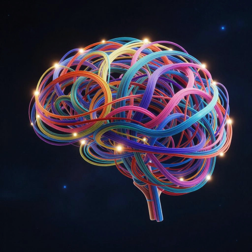 AI art prompt visualizing an abstract representation of neural networks as vibrant colorful threads weaving together into complex patterns, symbolizing intelligence and creativity, with dynamic motion and glowing nodes in a dark, cosmic background.