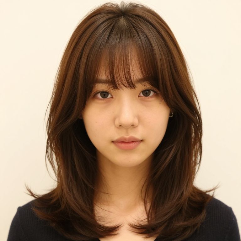 Natural Brunette Double-Parted Bangs