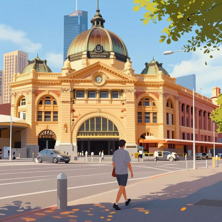 I walk in melbourne, australia. volumetric lighting, summer, late morning, nice weather, realistic illustration, perfectly shaded, soft painting, art by krenz cushart and wenjun lin