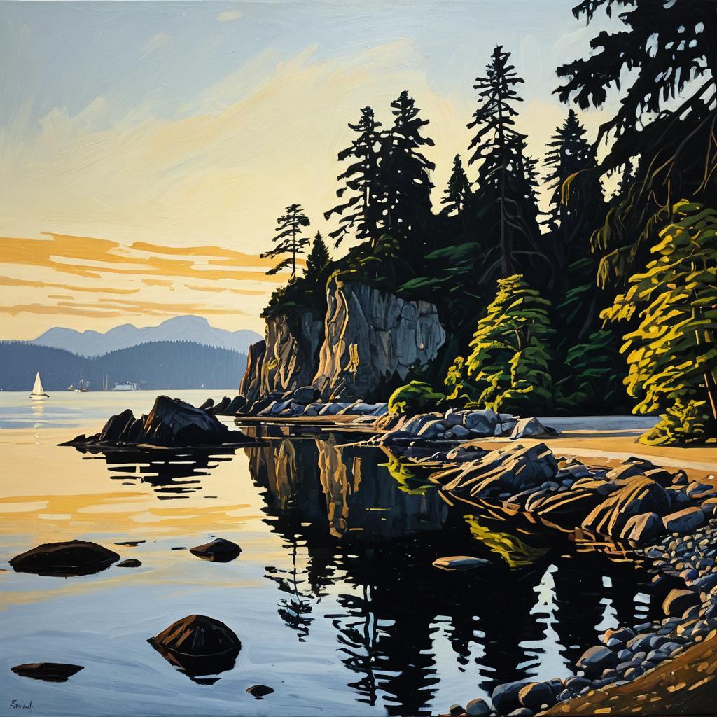 Watercolor painting of ancient cypress tree in Japanese coastal cliffs at dawn, art by Claude Monet, Winslow Homer, cinematic lighting and lush detail.
