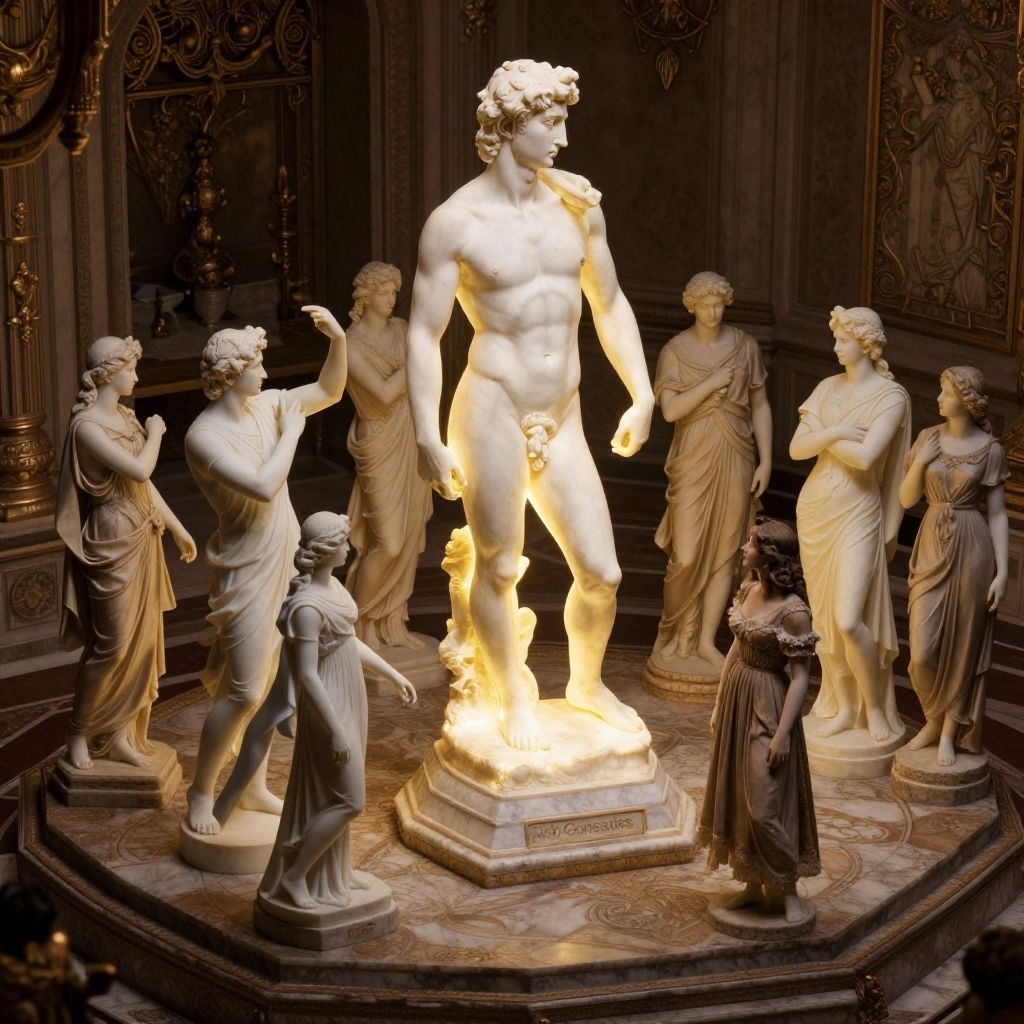 Isometric style (Realistic Surrealism), (Detailed realism with fantastical elements, seamless integration of surreal imagery), rich color palette, dramatic lighting, precise composition, by (((Rob Gonsalves), Alex Alemany, Sculptural Marble Glow: Experience the divine radiance reminiscent of Michelangelo's masterpieces, where light bathes each form in a perfect sculptural glow. With (serene luminosity and pristine clarity:1.2), this illumination unveils the timeless beauty and harmonious proportions of Michelangelo's creations, inviting viewers to marvel at the sublime artistry carved in stone., Vintage Illuminated Charm: Experience the enchantment of days gone by, where light weaves through the fabric of time, illuminating scenes of vintage elegance. With (subtle sepia tones and delicate filigree:1.2), it creates an ambiance of (timeless sophistication and nostalgic allure). Immersed in the vintage illuminated charm, (viewers are transported to a bygone era where each radiant beam whispers tales of old:1.2), inviting them to relive the magic of the past with hearts full of cherished memories and enduring elegance. . vibrant, beautiful, crisp, detailed, ultra detailed, intricate