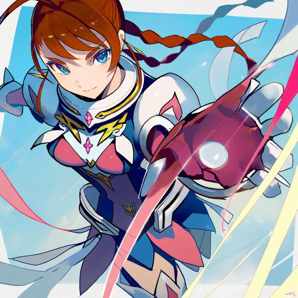 Arika yumemiya, my-otome, 1girl, blue eyes, brown hair, long hair, ahoge, twin braids, by artist kotoba noriaki, animagine
