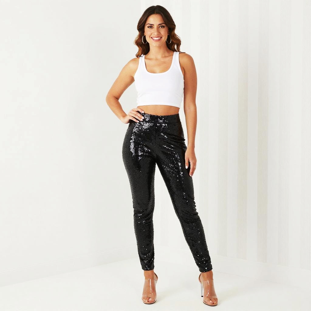 Confident Woman in Chic Sequin Pants