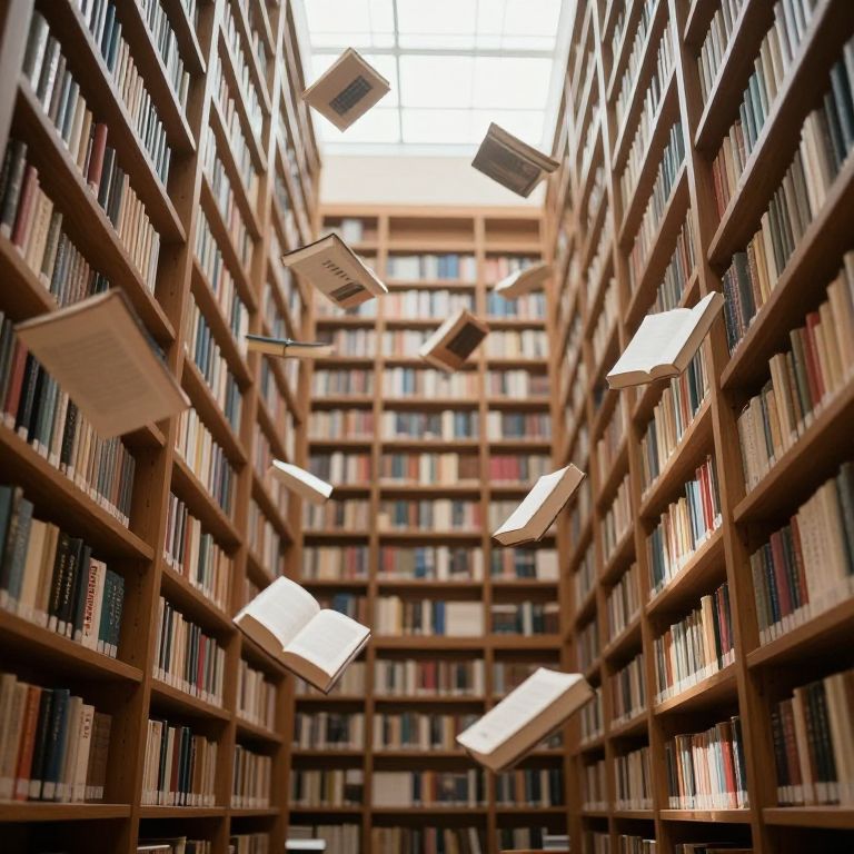 A forest of floating books grows upside down, their pages rustling into whispers that guide lost echoes to forgotten endings.