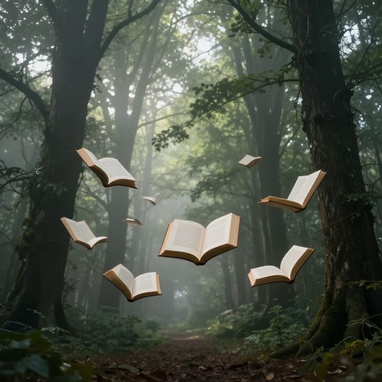 Floating Books Forest Surreal Scene