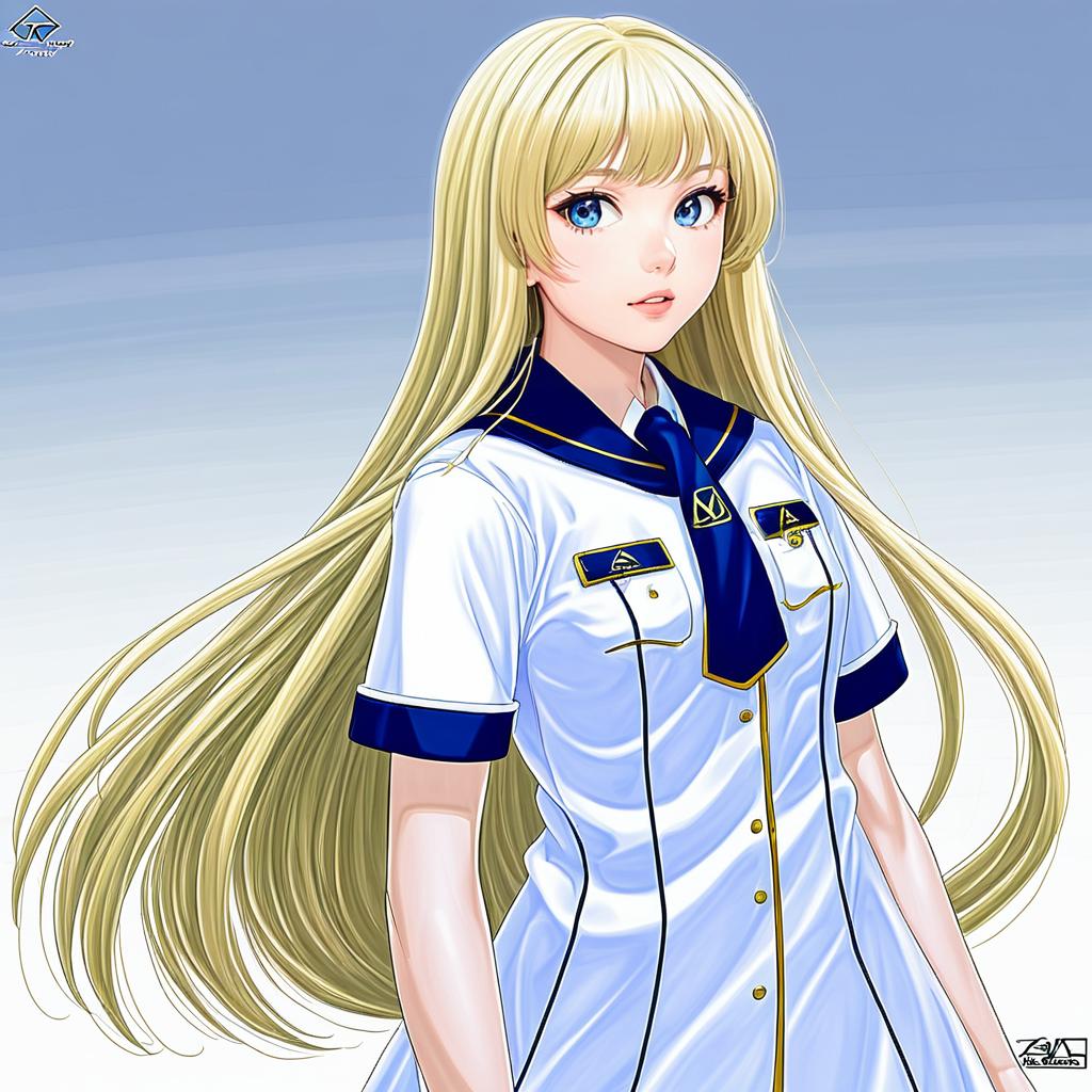 Alicia florence, aria (manga), 1girl, blue eyes, blonde hair, long hair, very long hair, braided ponytail, single braid, aria company uniform, uniform, aria company uniform, uniform, white dress, long dress, white shirt, short sleeves, sailor collar, blouse, by artist sage joh, anime