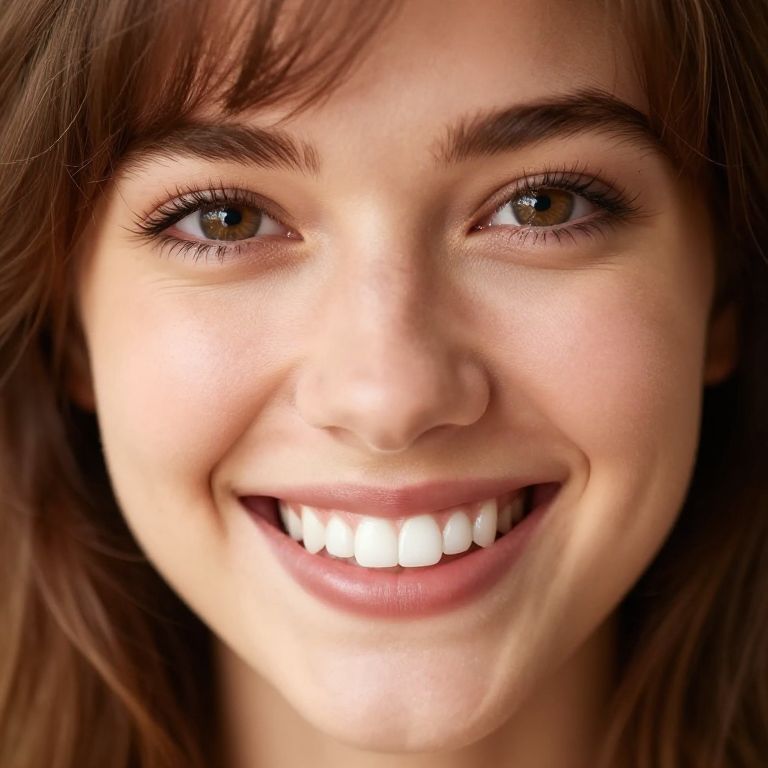 Knitted nicolette langleys smiling face, super close up, hyperrealistic, white teeth, sparkling eyes, highlights in hair,