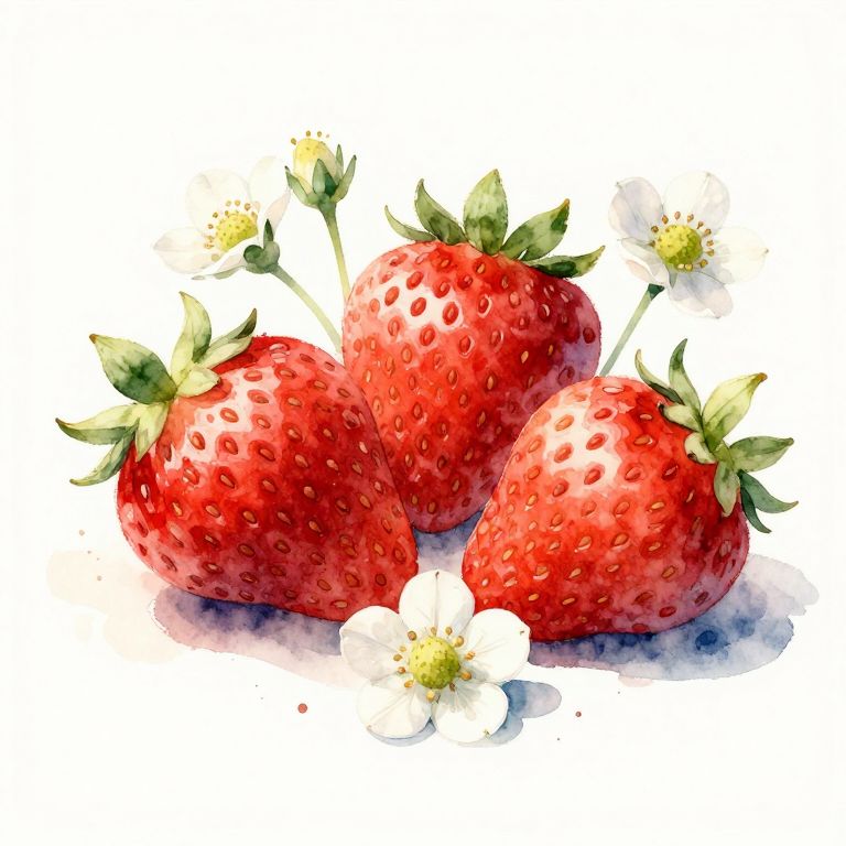 Watercolor Painting of Fresh Strawberries