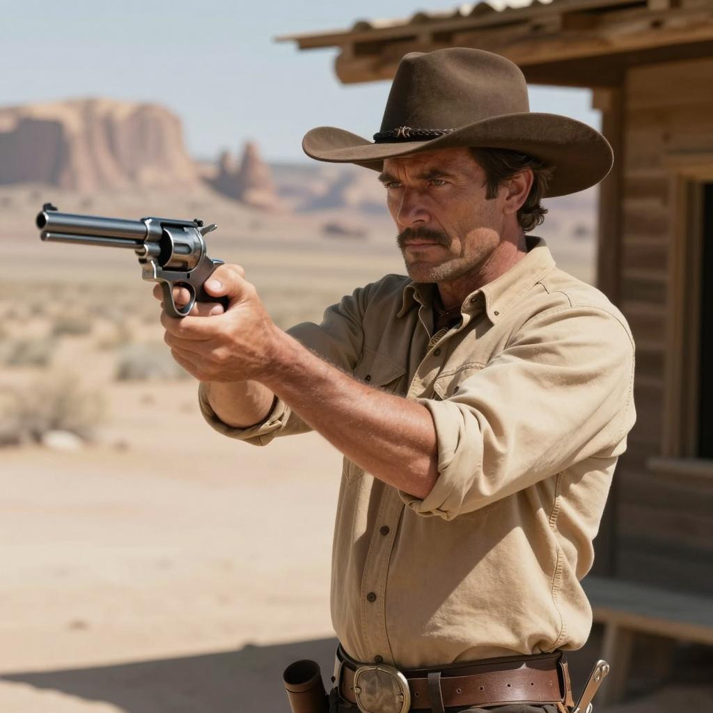 Rugged Cowboy in Dusty Western Town