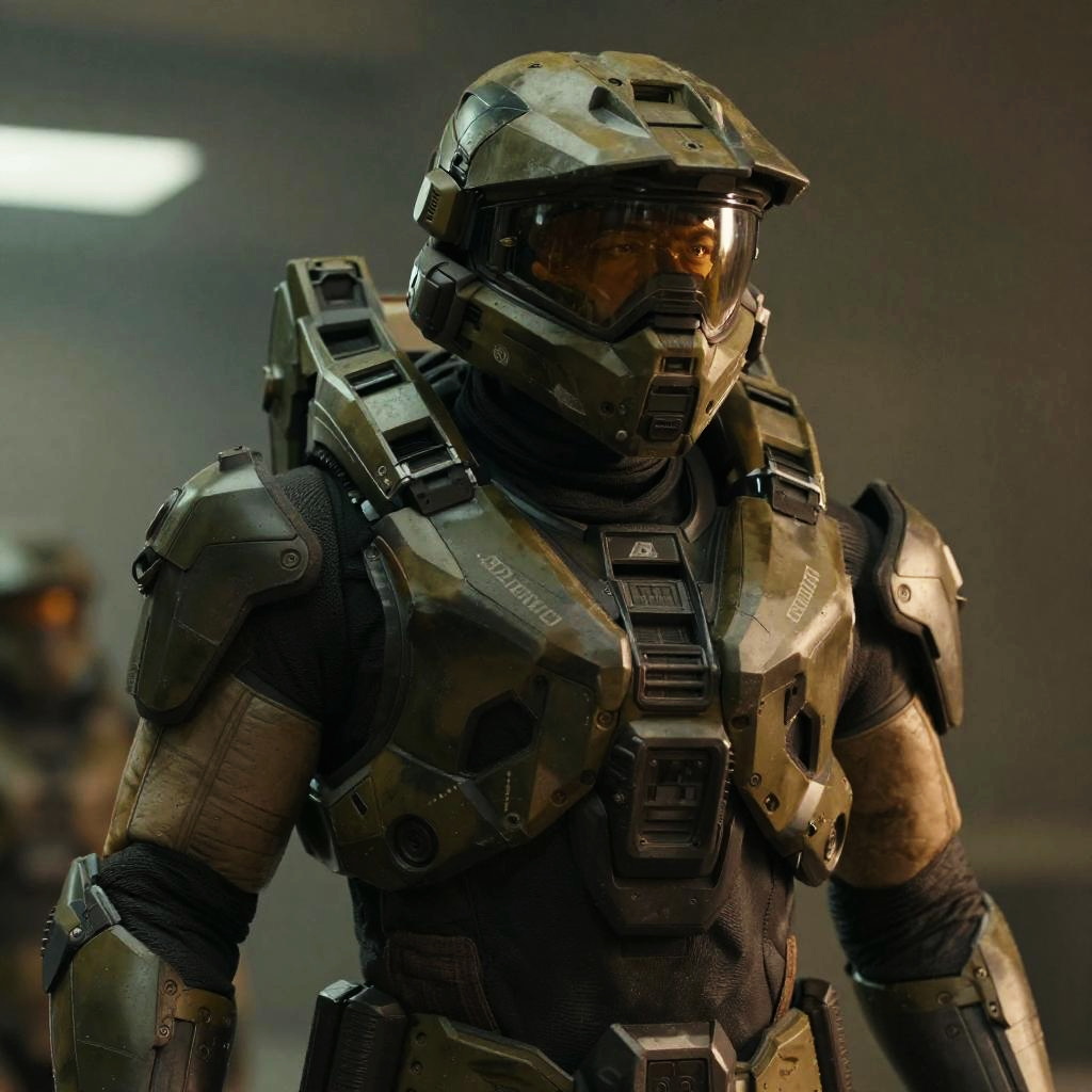 A cinematic upper body shot for (master chief from halo:1.4), huge body, (male:1.4), man, (dark:1.2), (cinematic atmosphere:1.2), RAW photo shot by dslr Fujifilm XT3 depth of field bokeh soft lighting film grain photography Realistic photorealistic Lifelike, (detailed clothes photo background) (full sharp:1.2) intricate 4k 8k quality resolution uhd extremally ultra skin texture