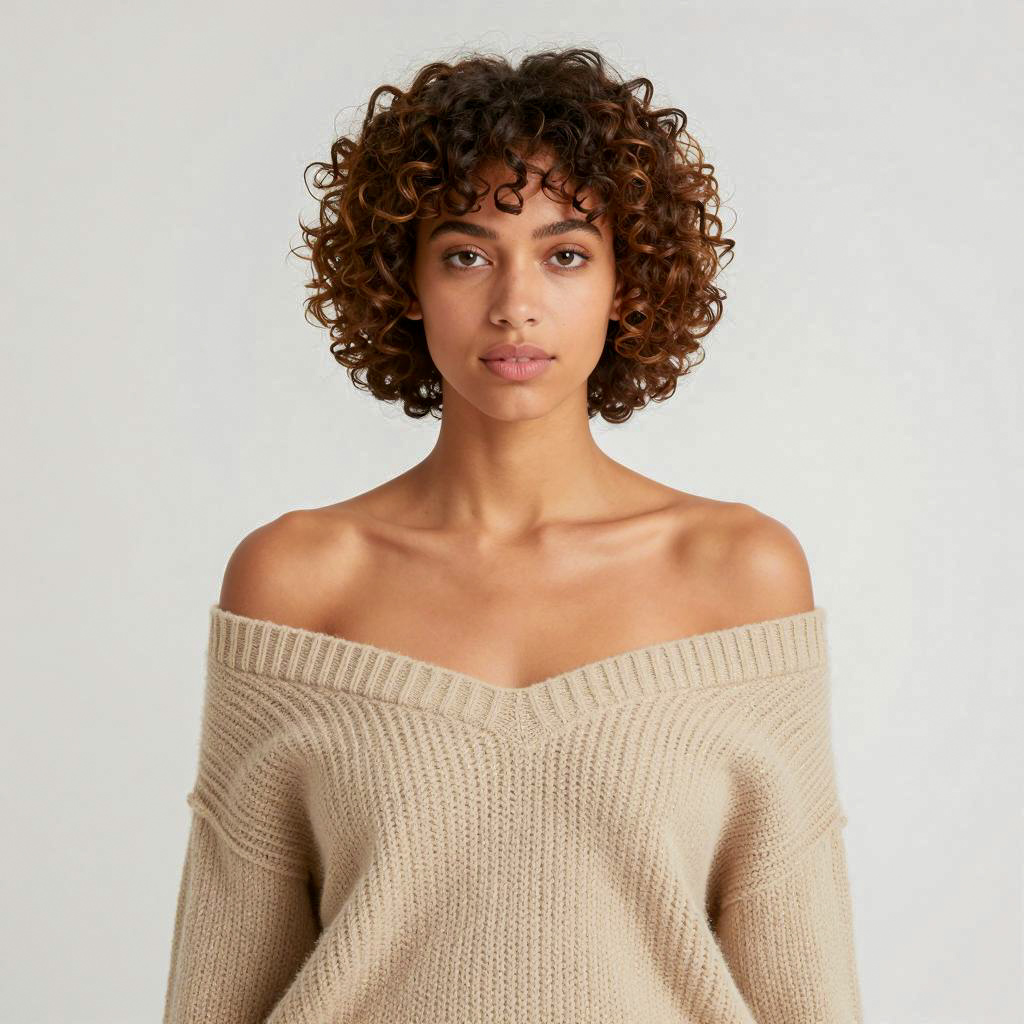 Portrait of Woman with Curly Hair and Gold Jewelry