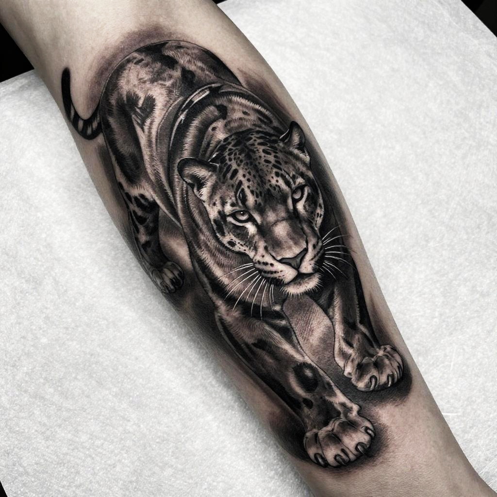 Realistic Black and White Panther Tattoo