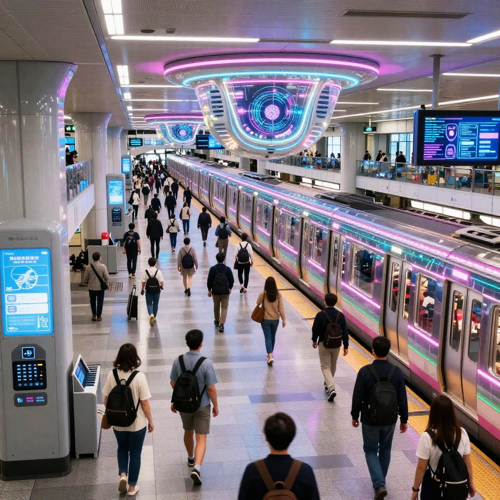 Futuristic Tokyo Subway with Neon Glow