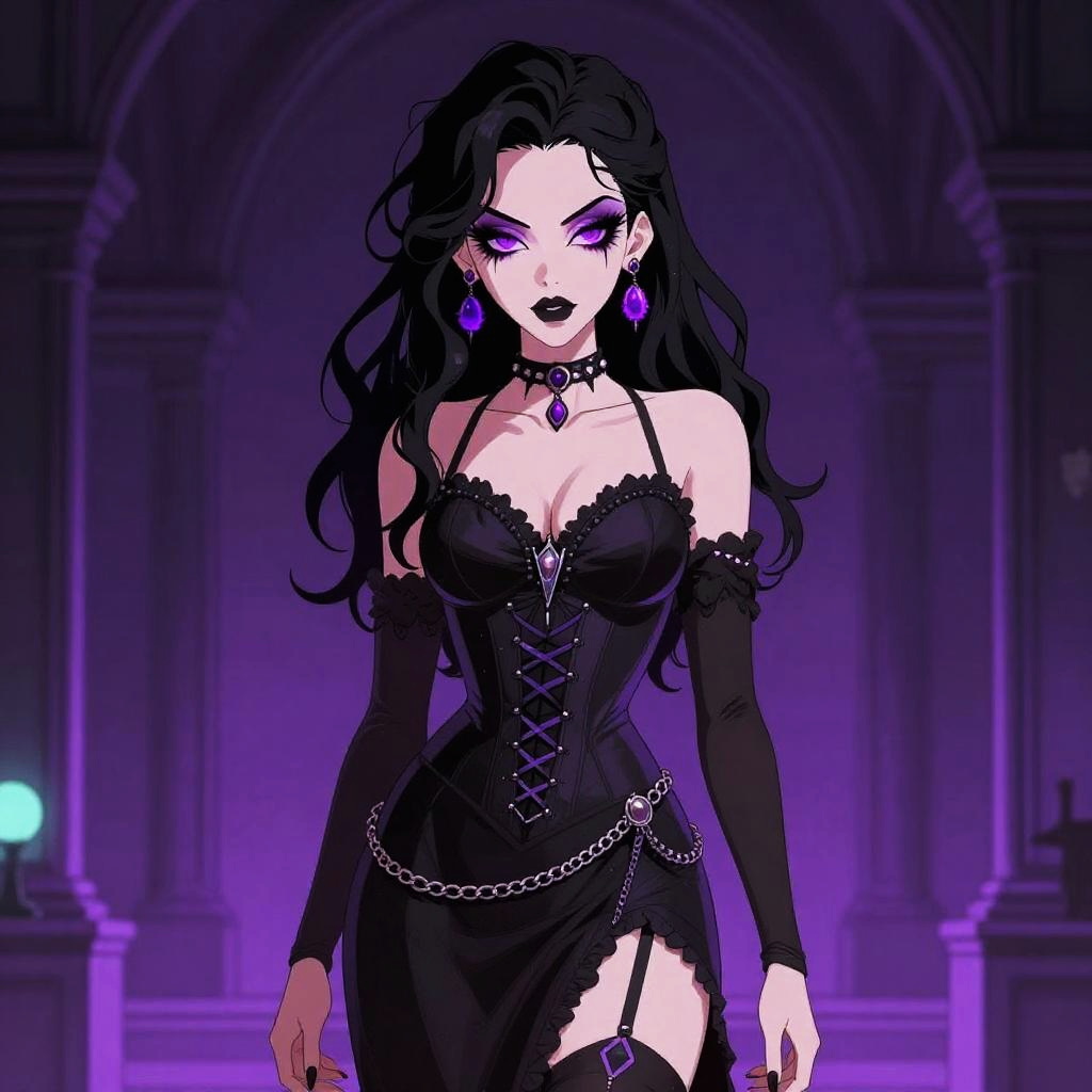 Woman illustration. Cartoon, erotic vibe. Fusion of styles Gothic and Vaporwave
