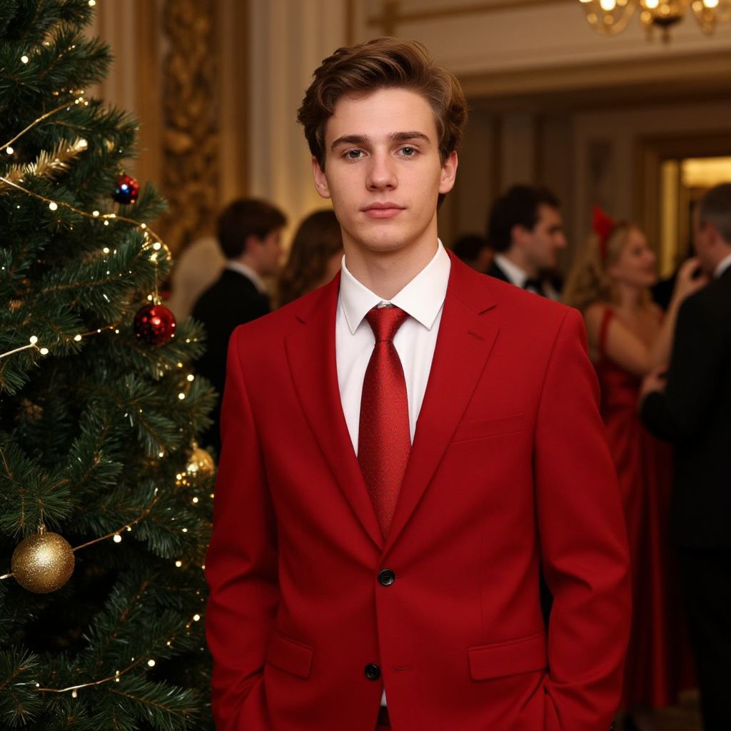 Young Man in Festive Red Suit