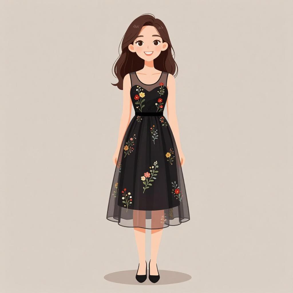 Elegant Woman in Black Ball Gown