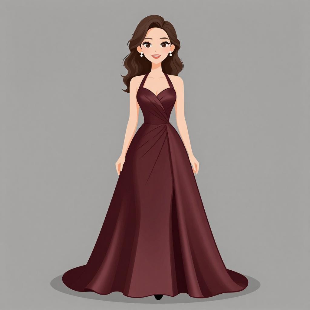 Woman with pretty face and pretty hair. smiling Woman, formal elegance, black sleeveless ball gown with deep V-neckline, wide shoulder straps, fitted bodice, shimmering belt detail at the waist, voluminous full-length skirt, light makeup with neutral tones, wavy hair styled down over shoulders, plain light-colored studio background. --sref 1467