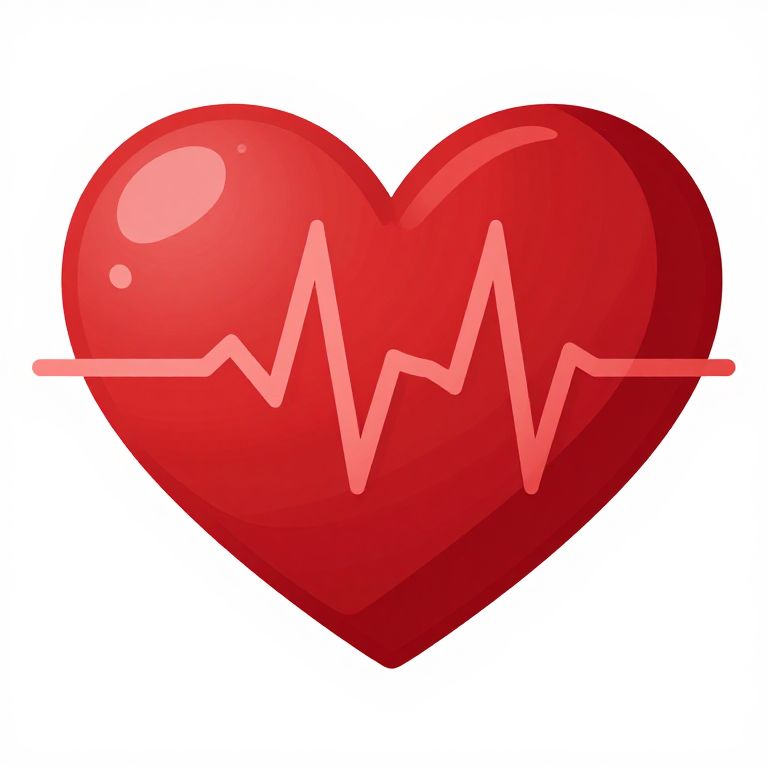 A vibrant vector illustration of a glossy red heart featuring a subtle heartbeat line, rendered in a clean, cartoon-style design with soft shading and reflective highlights, evoking a sense of health and vitality.