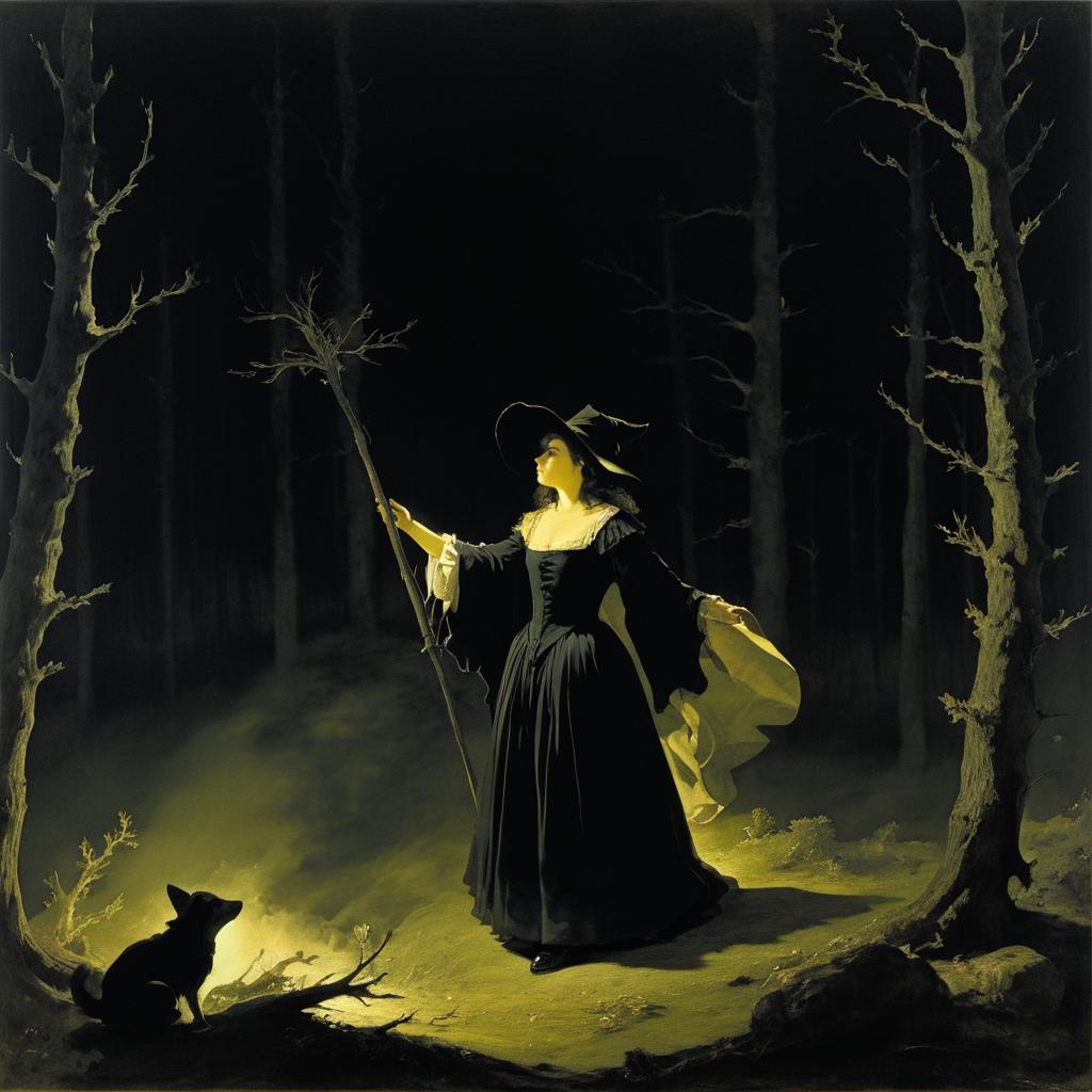 A witch at a haunted forest clearing by Goya, detailed and dramatic composition.