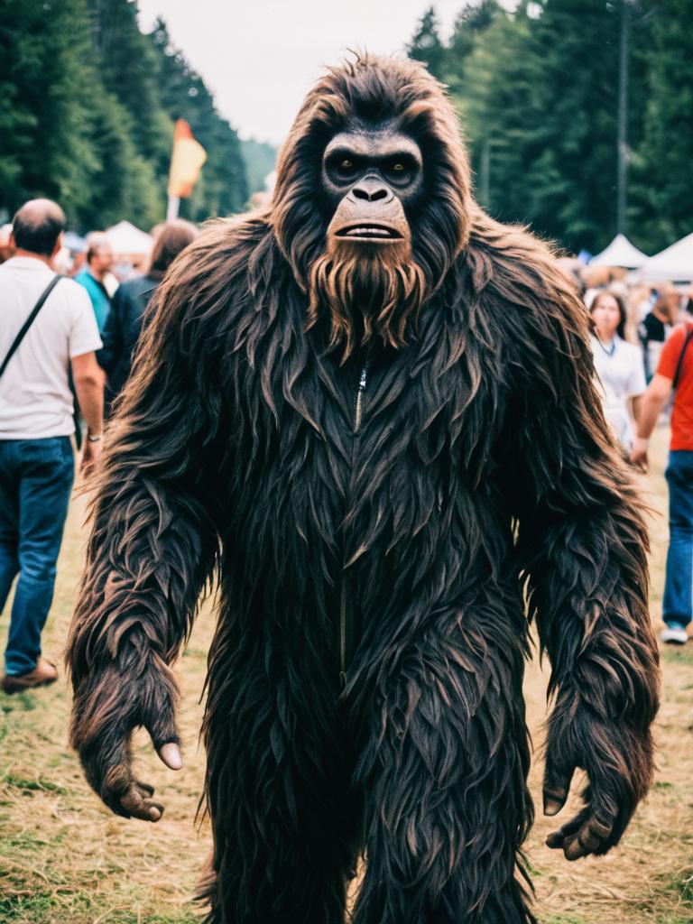 Man in Bigfoot Costume, candid cosplay portrait at festival