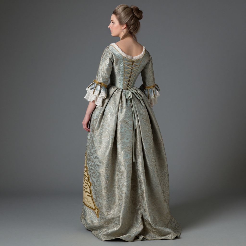 Woman's Robe à la Française, or 'sack-back gown' or 'Watteau' (because Watteau has portrayed it so many times in his paintings) made with silk satin 'chinoiserie' fabric 1740-1760 18th century, Netherlands, Amsterdam